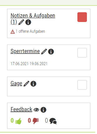 Sie sehen auf einen Blick wo noch etwas zu tun ist und welche Personen an dem Projekt beteiligt sind. Abgeschlossene Projekte können Sie archivieren um später jederzeit wieder auf frühere Besetzungsideen zugreifen zu können.